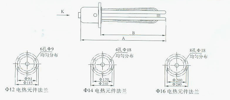 注:加热器有效发热面必须保证在加热介质内,制造均安JB2379-78